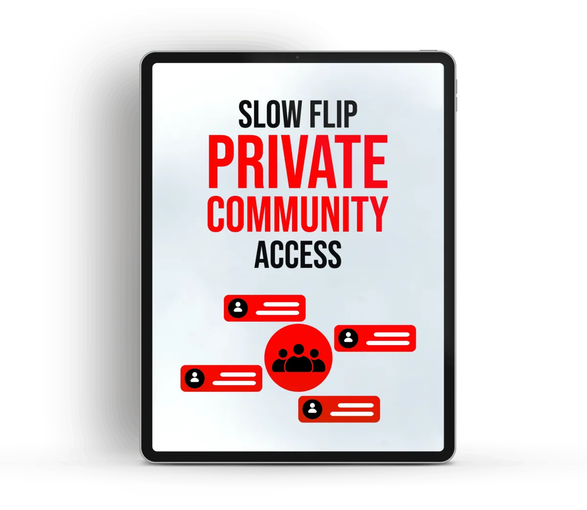 The Art Of The Slow Flip is an ebook built to get you closer to acquiring your firs $875-1200/mo income generating Slow Flip. Slow Flips help you earn recurring monthly income so you can spend your retirement years with your loved ones without worrying about needing a job again.